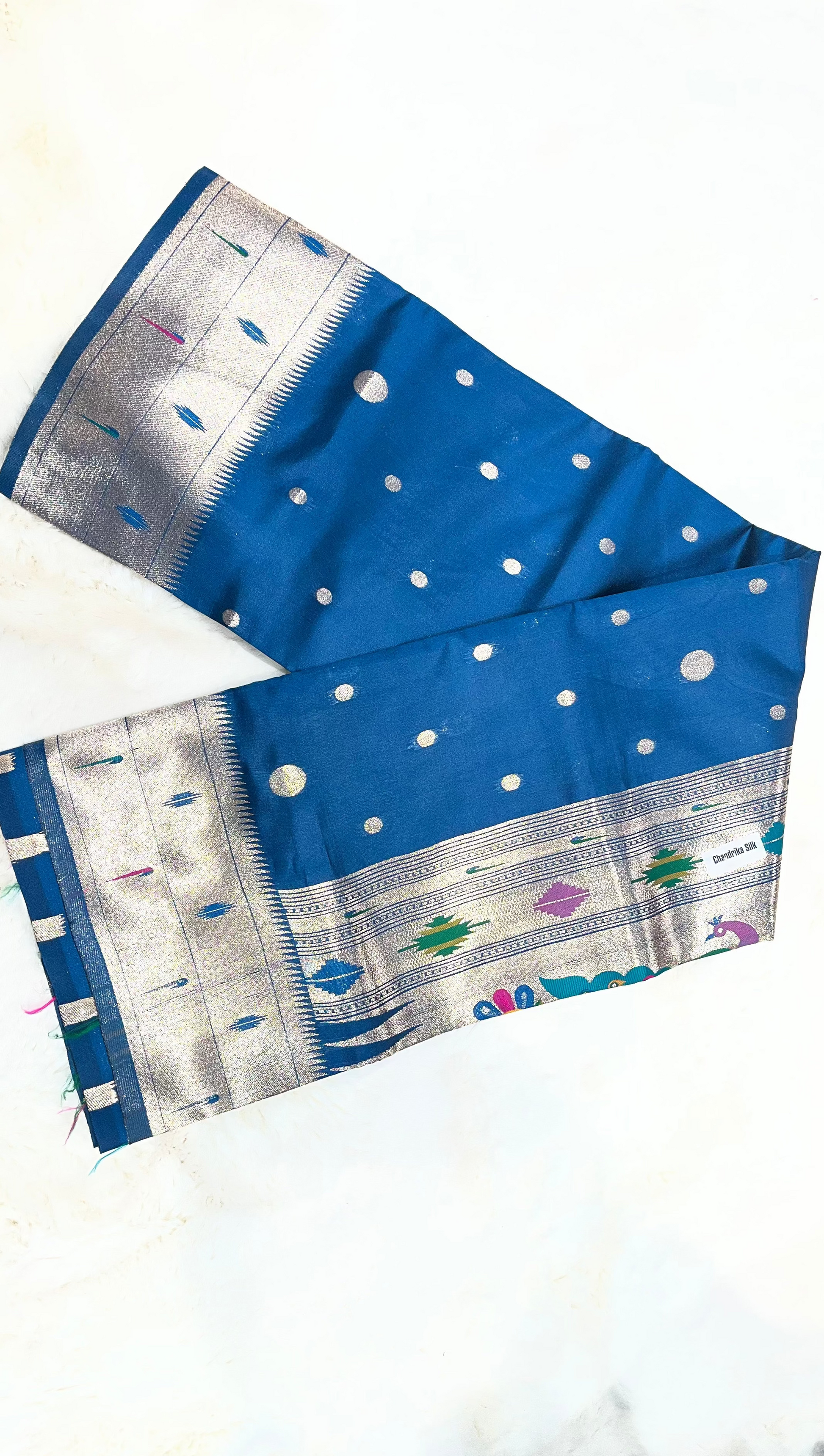 Experience timeless Maharashtrian elegance with this beautiful Chandrika Silk Kathpadar Muniya Paithani Saree, specially crafted for weddings, festive occasions, and traditional celebrations.